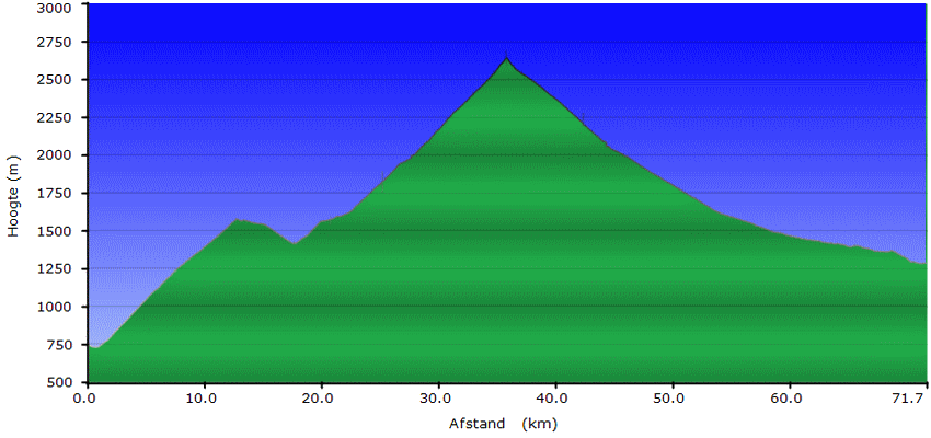 De laatste 8km waren een stuk steiler, maar wel veel mooier. Nog een keer diep ademhalen voor de laatste en steilste kilometer, maar dat ging van bocht naar bocht, en dat rijdt toch lekkerder. Om 3 uur was ik boven.